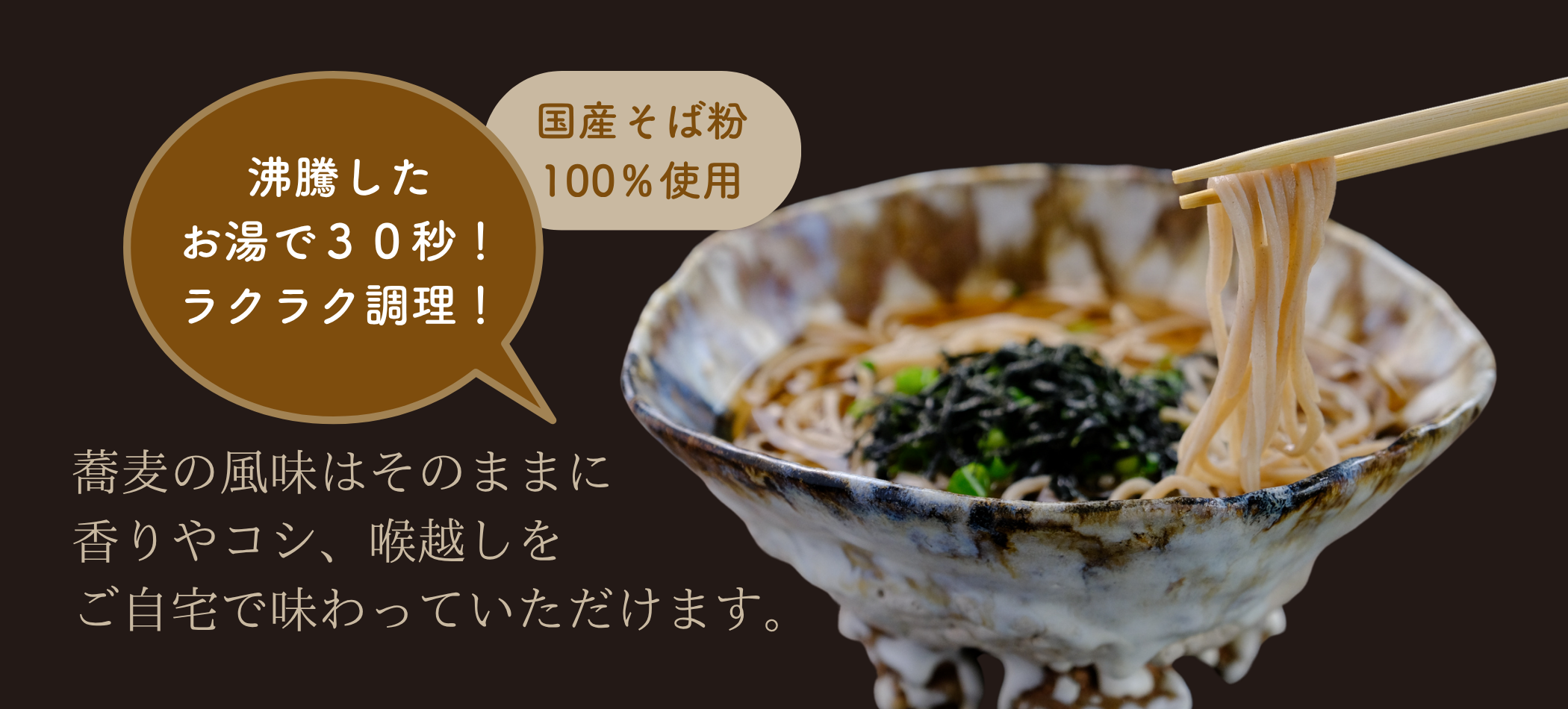 つなぎを一切使用しない風味豊かな十割蕎麦で味わってほしい。